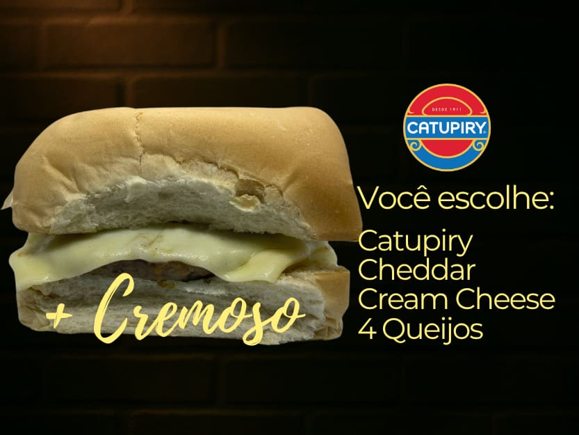 O sabor você escolhe: Catupiry Tradicional, Cheddar, 4 Queijos ou Cream Cheese.