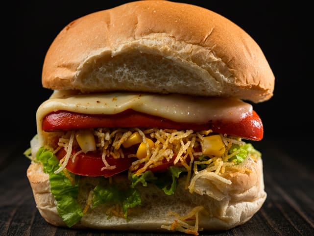 Filé de frango suculento, duas salsichas e queijo derretido combinam com alface, tomate, milho e uma camada generosa de batata-palha crocante. Um lanche completo pra matar a fome com muito sabor!