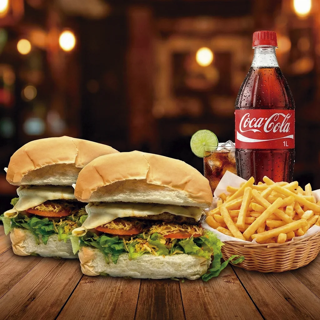 Sabe aquele casal que combina em tudo? É este combo. Dois clássicos X-Saladas preparados com ingredientes fresquinhos, acompanhados de uma batata média sequinha e um Refri de 1l para dividir. A escolha certa, sem erro e com muito sabor.